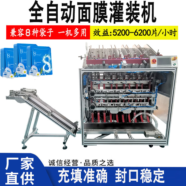 2.全自動(dòng)面膜機(jī) | 1.充填精華液,再對(duì)充填完精華液的面膜袋進(jìn)行封口和打碼 2.面膜灌裝機(jī)自動(dòng)下袋、自動(dòng)填充、自動(dòng)封口、成品輸出、自動(dòng)計(jì)數(shù),無(wú)袋不充填,無(wú)袋不封口 |
