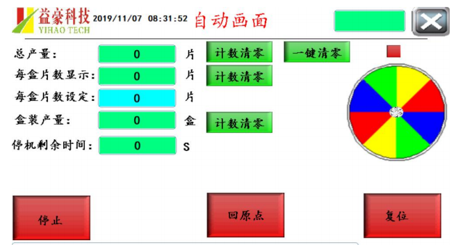 【每盒片數(shù)顯示】:針對(duì)設(shè)定每盒的片數(shù)來進(jìn)行計(jì)數(shù)。可以手動(dòng)清零也可以一鍵清零